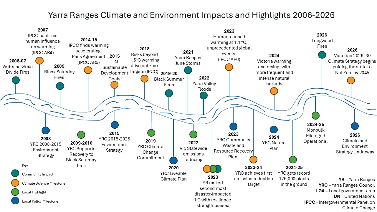 Science and research tell us our climate is changing, and it’s already impacting Yarra Ranges.Tackling climate change requires a coordinated effort across all tiers of government. By acting locally, we contribute to broader national and global solutions and strengthen the resilience of our own communities.
