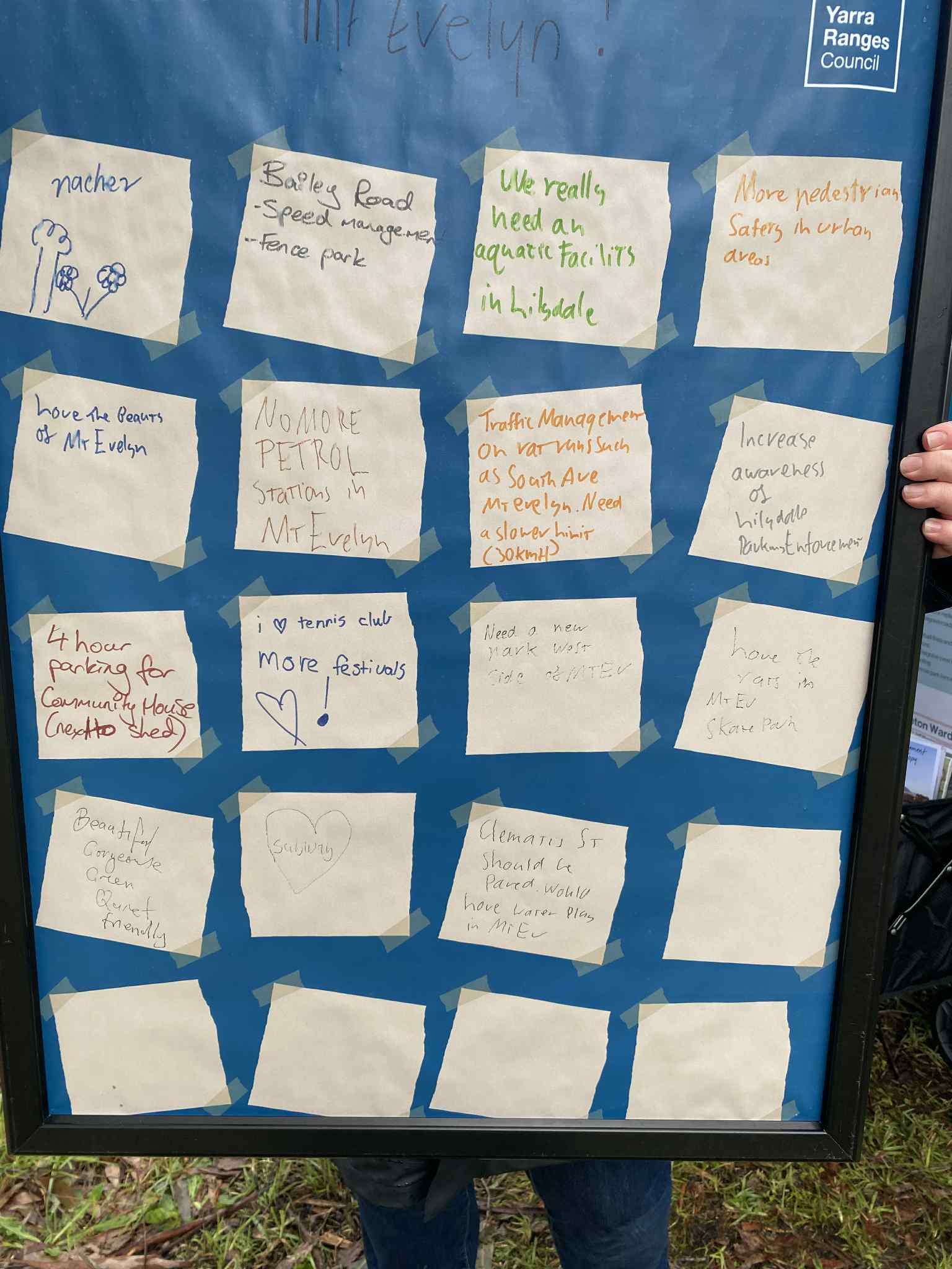 Rain definitely did not stop a huge attendance at the annual Mt Evelyn Street party! The community spirit was high & we chatted to lots of Mt Evelyn residents, other local residents of Yarra Ranges and visitors to the area at our marquee. Today we chatted about projects currently open for engagement - and the importance of having your say on projects in your region - some local works updates for the area, and we asked what do YOU love about Mt Evelyn !