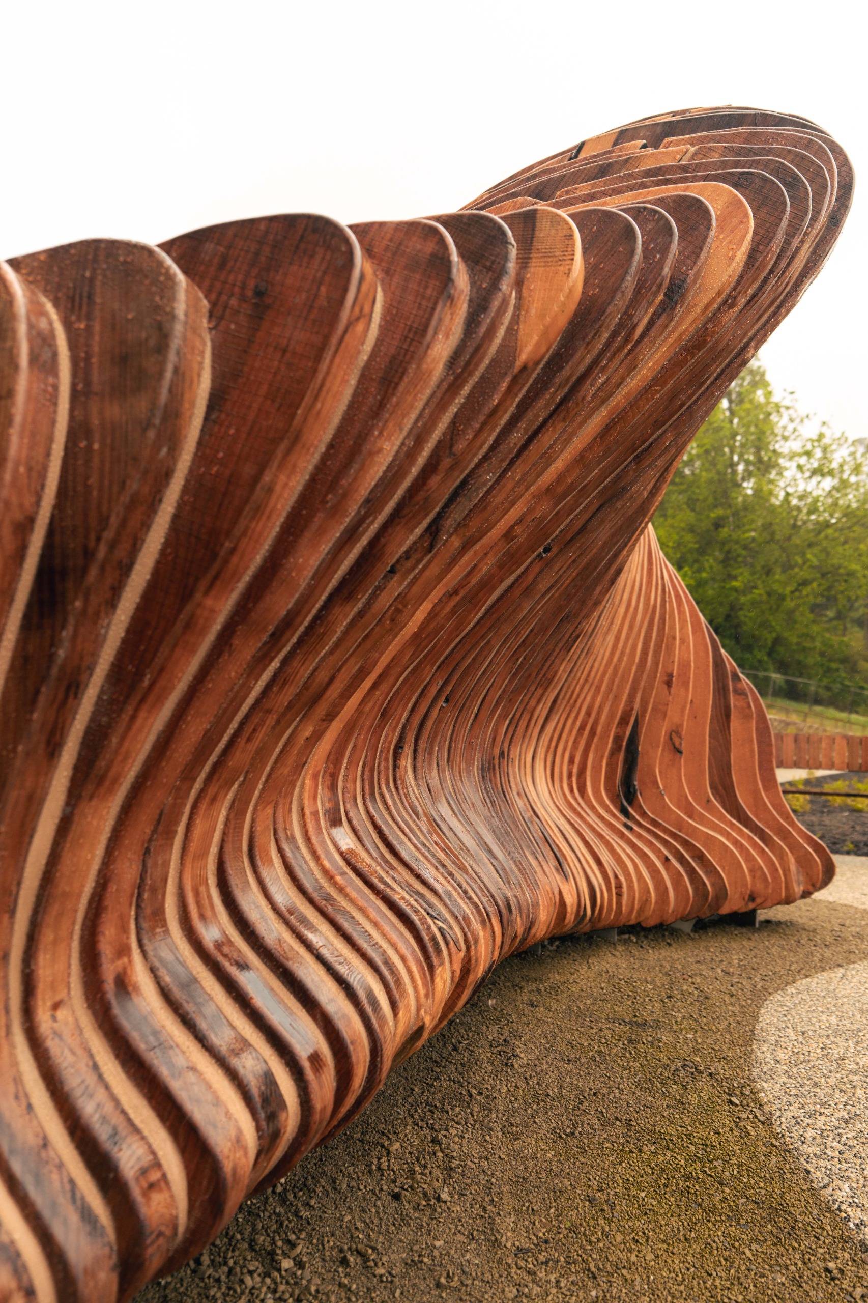 For this work, artist Jon Tarry worked collaboratively with James Morton of TARRMACstudio and landscape architect Marti Fooks to create an experience that comprises sculpture embedded in its environment, as well as native plantings and pathways, designed to complement one another and be experienced as a whole. This will soon be accessible to the public.