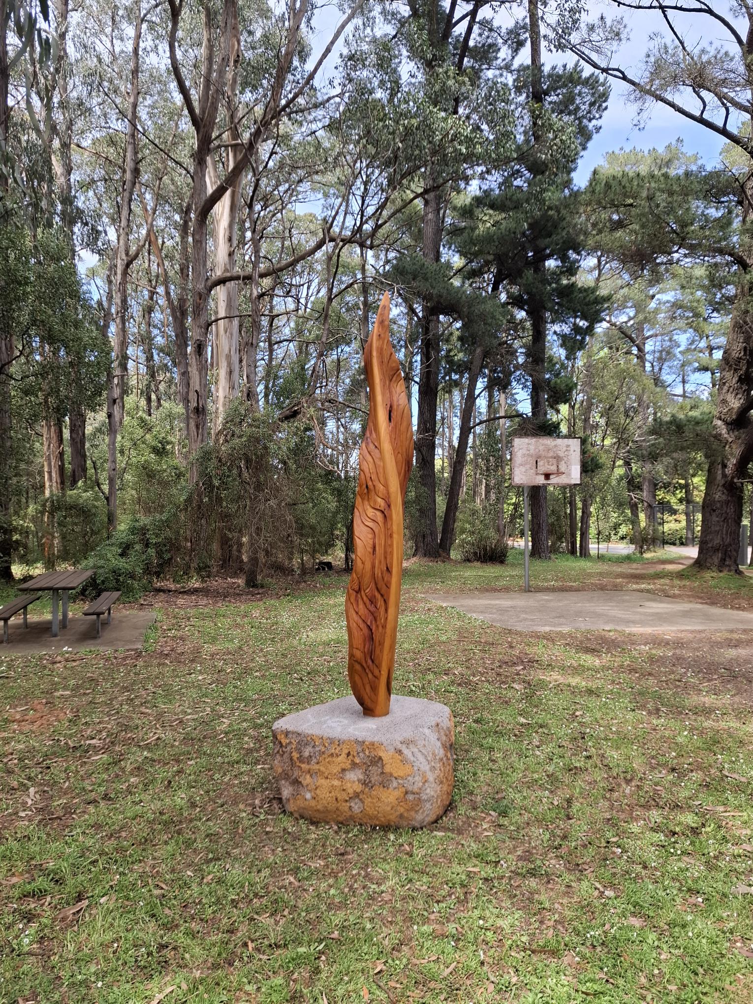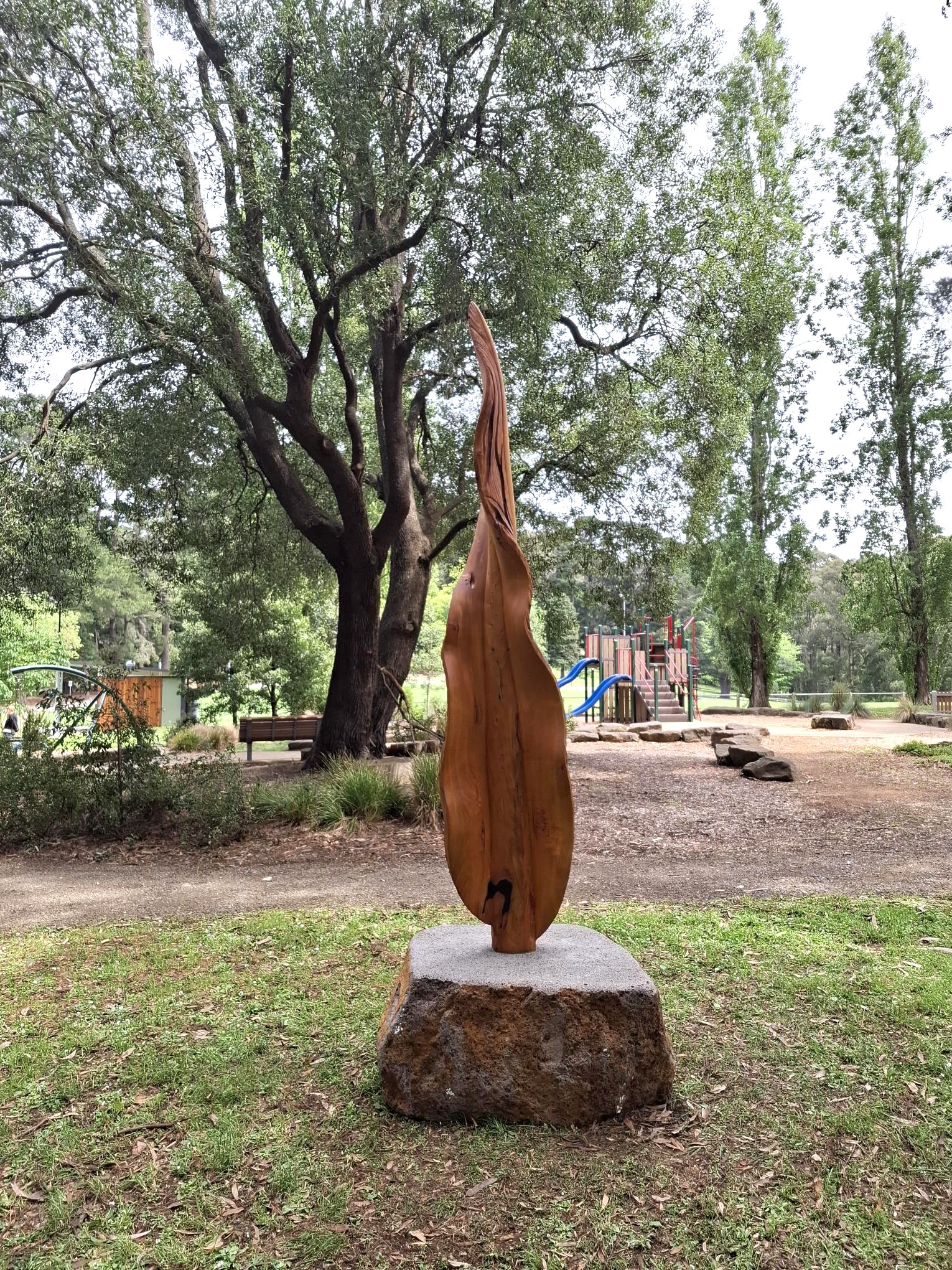 The final of five Storm Leaves, by sculptor Anton McMurray, has been installed in Kalorama Memorial Park. Here you can also visit the Karwara Australian Gardens, where the Tawny Frogmouth sculpture currently lives. Two water tanks, part of the Indigenous Artwork Water Tank project, are also located in Kalorama Memorial Park.